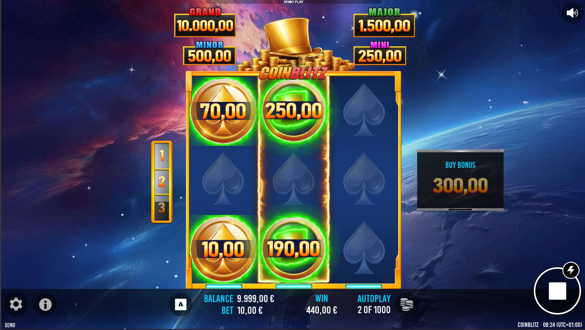 | Features | Blitz Collect feature, Re-spins, In-game jackpot, Random Feature trigger |